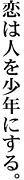初老の英国人小説家デアス(ジョン・ハート)。世の中の尊敬を集める文豪だ。 ある日、珍しくロンドンの町中へ外出すると、そこでは敬愛する文豪E.M.フォースター原作の文芸映画がかかっていた。チケットを買って入場すると、間違えて別の映画館へ入ってしまう(シネマコンプレックスだった)。そこではなんとアメリカのティーン映画『ホットパンツ.カレッジ2』が上映されていた。 憤慨し、映画館を出ようしたデアスだが、彼は一瞬、スクリーンに目を見張った・・・「なんと美しい」・・・そこにはアイドル俳優ロニー・ボストック(ジェーソン・プリーストリー)がいた。栄光の夭折詩人チャトンを思わせるあまりに端麗無比なその姿。一目で心を奪われた彼は、それ以来、夜も日もなく”ロニー”を追いかける。ビデオから、アイドル誌まで、あらゆる情報を集めコレクターと化していく。 やがてアメリカ若者文化のオタクと化したデアスは、ロニーの住むアメリカ、ロングアイランドへの旅立ちを決心する。 切ない彼の想いはロニーに通じるのだろうか・・・ |